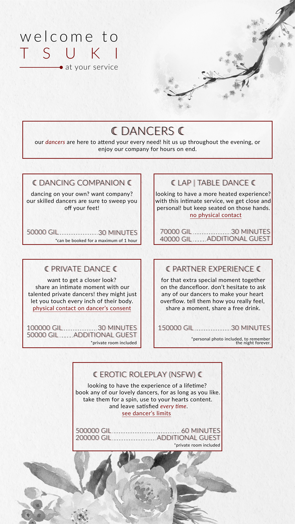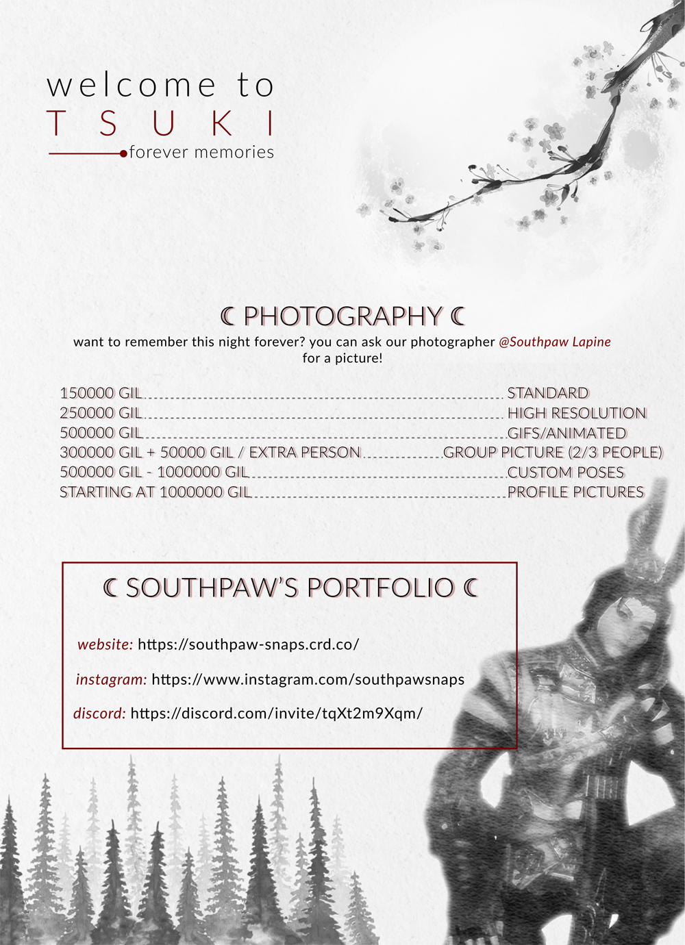 Booking info: via discord (you can find me on the TSUKI discord server)